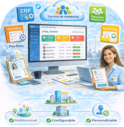 Configura horarios, turnos, reglas laborales, sedes y perfiles de usuario según la realidad de cada empresa, desde pymes hasta corporaciones con múltiples sucursales.